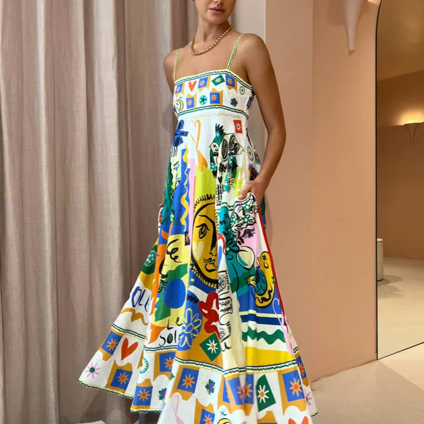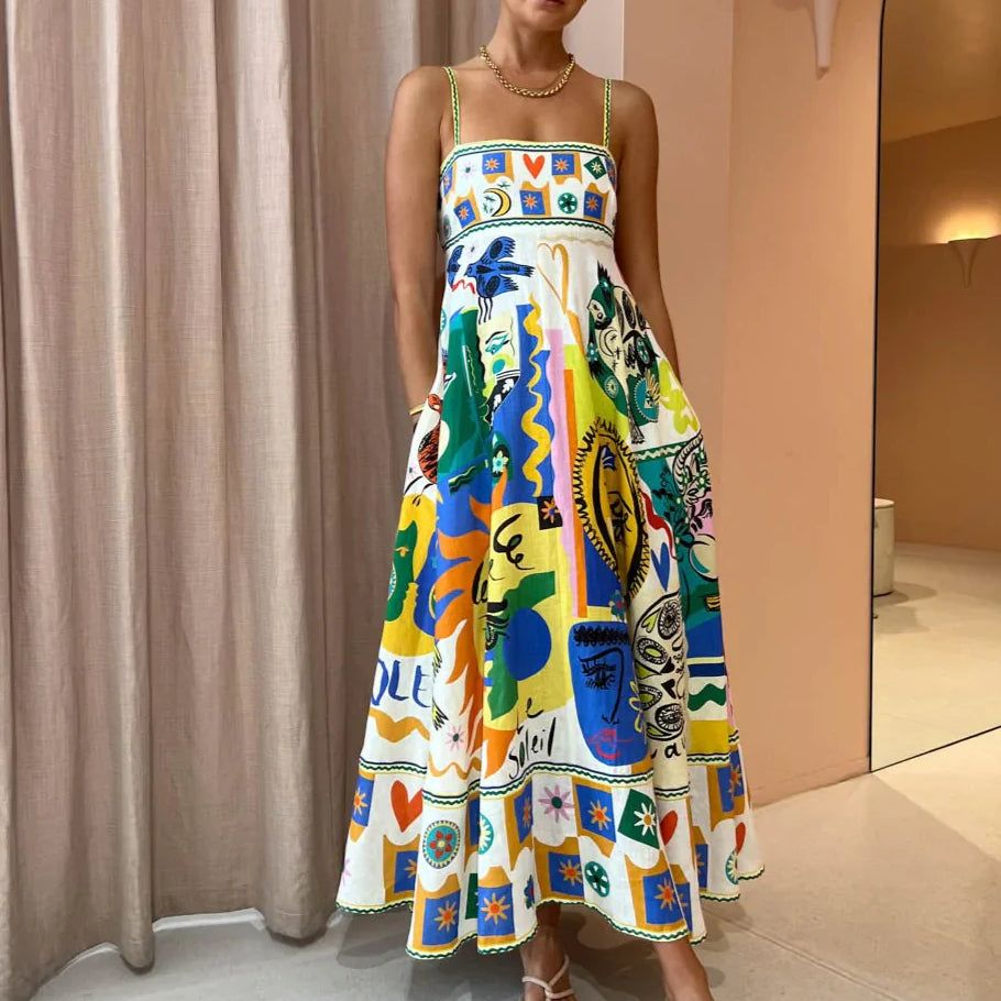 Women’s Abstract Print Maxi Dress – Sleeveless Bohemian
