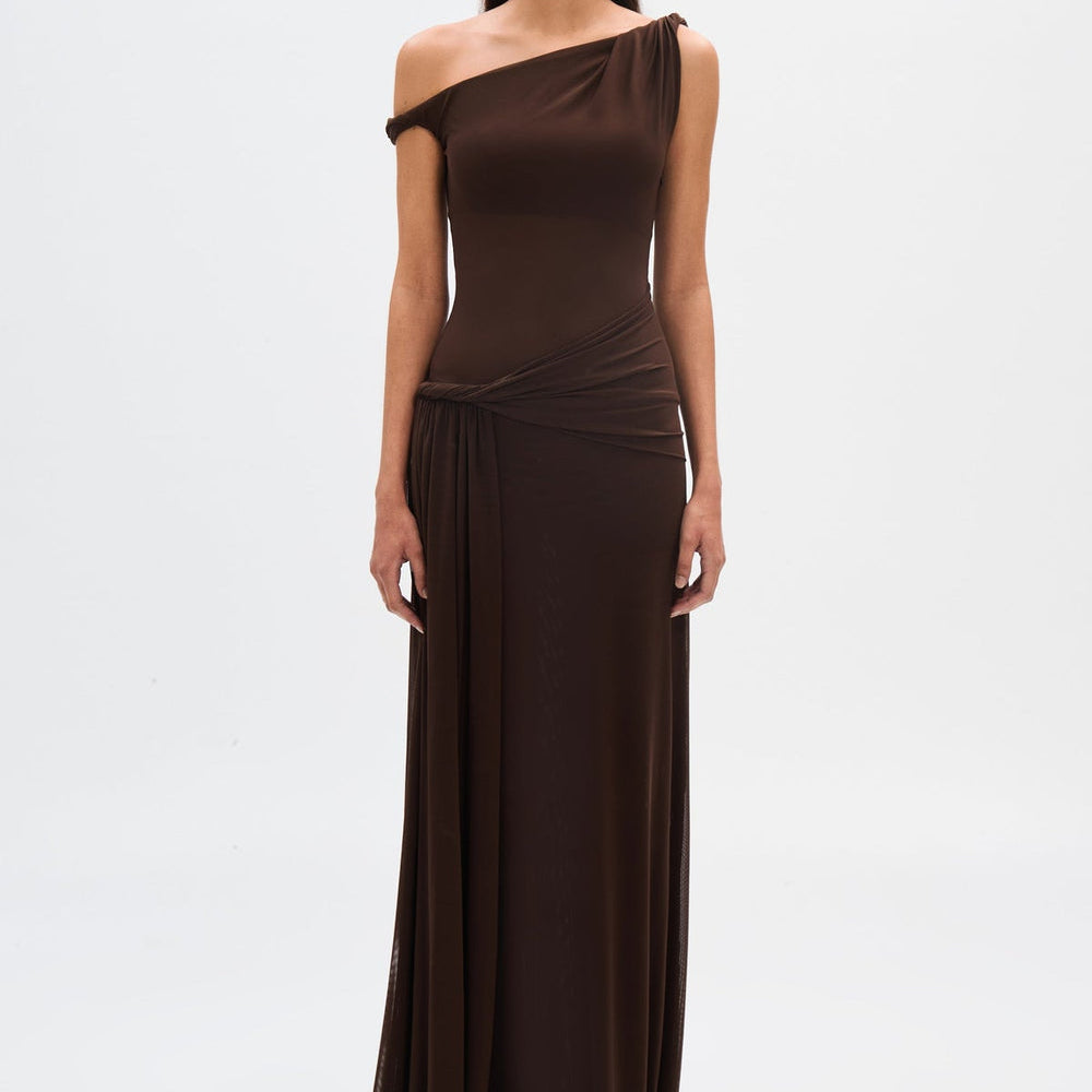 Women’s One-Shoulder Draped Maxi Dress – Elegant Asymmetrical Evening Gown