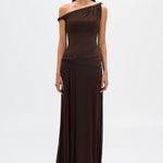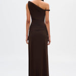 Graceful and timeless, this one-shoulder draped maxi dress embodies pure sophistication. Designed with soft, flowing fabric that contours beautifully to the body, it features an asymmetrical neckline with a gathered shoulder detail and a twisted drape at the waist for a sculpted silhouette. The floor-length hem creates an effortlessly refined look, perfect for evening events, weddings, or formal celebrations.