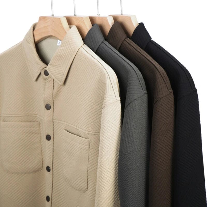 This men’s quilted snap-button overshirt combines structured design with everyday comfort. Made from a soft, textured fabric featuring a subtle geometric pattern, it delivers a refined and modern look that transitions effortlessly from casual to smart-casual occasions.