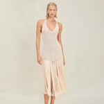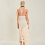 Women’s Halter Fringe Knit Midi Dress – Crochet Tassel Hem Resort Wear