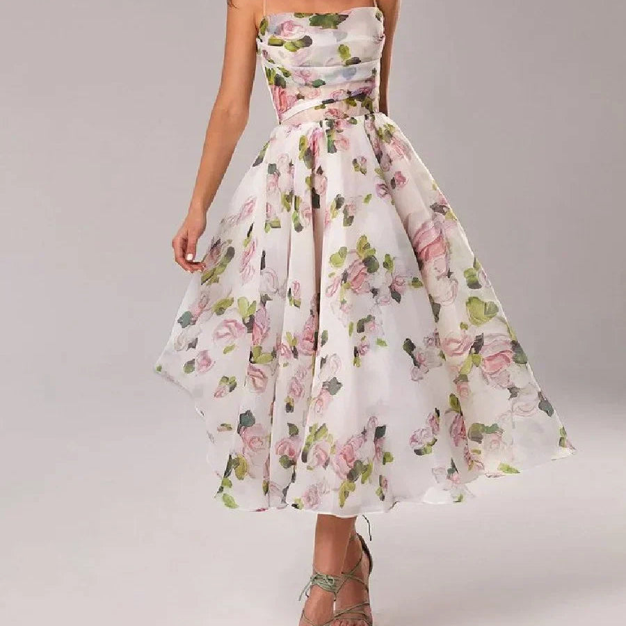 Women’s Fit & Flare Floral Midi Dress – Sleeveless A-Line Sundress