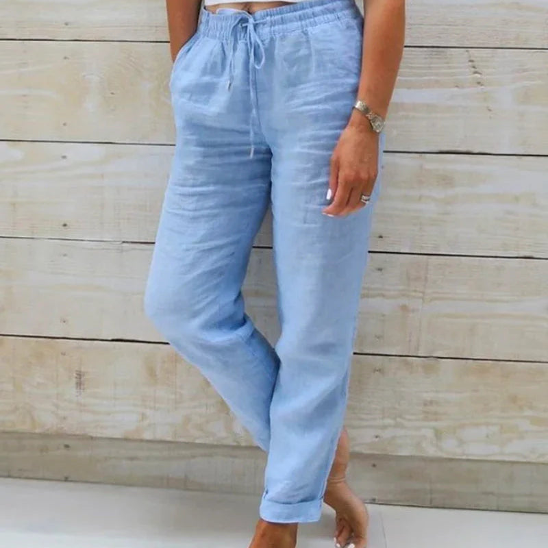 Women’s Cropped Linen Trousers – Relaxed Fit Drawstring Ankle Pants