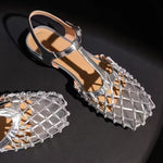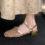 Women’s Mesh T-Strap Flat Sandals – Hollow Out Buckle Design