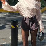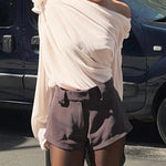 Elevate your wardrobe with this chic off-shoulder chiffon blouse, designed with fluid draping and a delicate floral accent detail at the shoulder. Its lightweight, semi-sheer fabric flows gracefully, creating a feminine and sophisticated silhouette perfect for evenings out or upscale day events. Pair it with tailored shorts, trousers, or a sleek skirt for an effortlessly polished look.