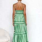 Step into sunshine with the Playful Whimsy Stripe Midi Dress, a vibrant blend of color and effortless elegance. Featuring a mix of vertical and horizontal stripes, this dress flatters every silhouette while adding a touch of playful sophistication. The lightweight fabric, tiered skirt, and delicate spaghetti straps make it the perfect choice for summer days, brunches, or beach escapes.