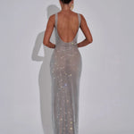 Women’s Sequin Evening Gown – Sleeveless Backless Floor-Length Dress