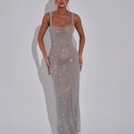 This dazzling evening gown is designed to make an unforgettable statement. Crafted with a figure-hugging silhouette, it features shimmering sequin detailing throughout, a daring low back, and a sleeveless square neckline for modern elegance. Perfect for galas, formal occasions, or high-profile events, this floor-length dress ensures all eyes are on you.