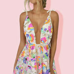 This dazzling sequin mini dress is designed to make an entrance. Featuring a daring plunge V-neckline, adjustable tie shoulder straps, and a striking backless design, it exudes glamour from every angle. The A-line silhouette with multi-color sequin embellishments catches the light beautifully, making it perfect for evening events, cocktails, or festive parties. Comfortable yet bold, this statement piece is made to shine.